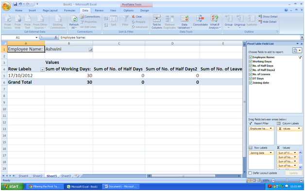 - Drag the field names from the Pivot Table Field List panel and drop them on the Pivot Table in the worksheet.