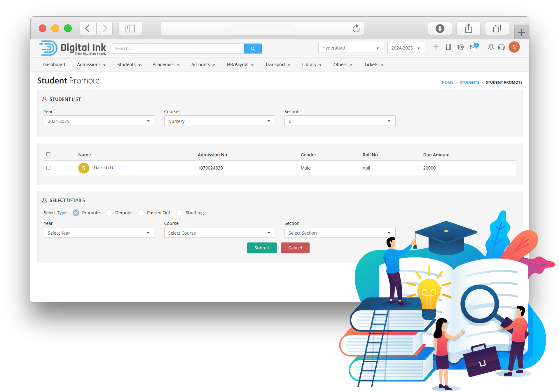 Making school transport secure and safe. Our software allocates and manages bus routes and stops for students and staff, manages student bus timings and bus fee slots. Easy integration with GPS devices enable location tracking of school buses enables easy generation of reports and record searches, making transport operations more efficient.