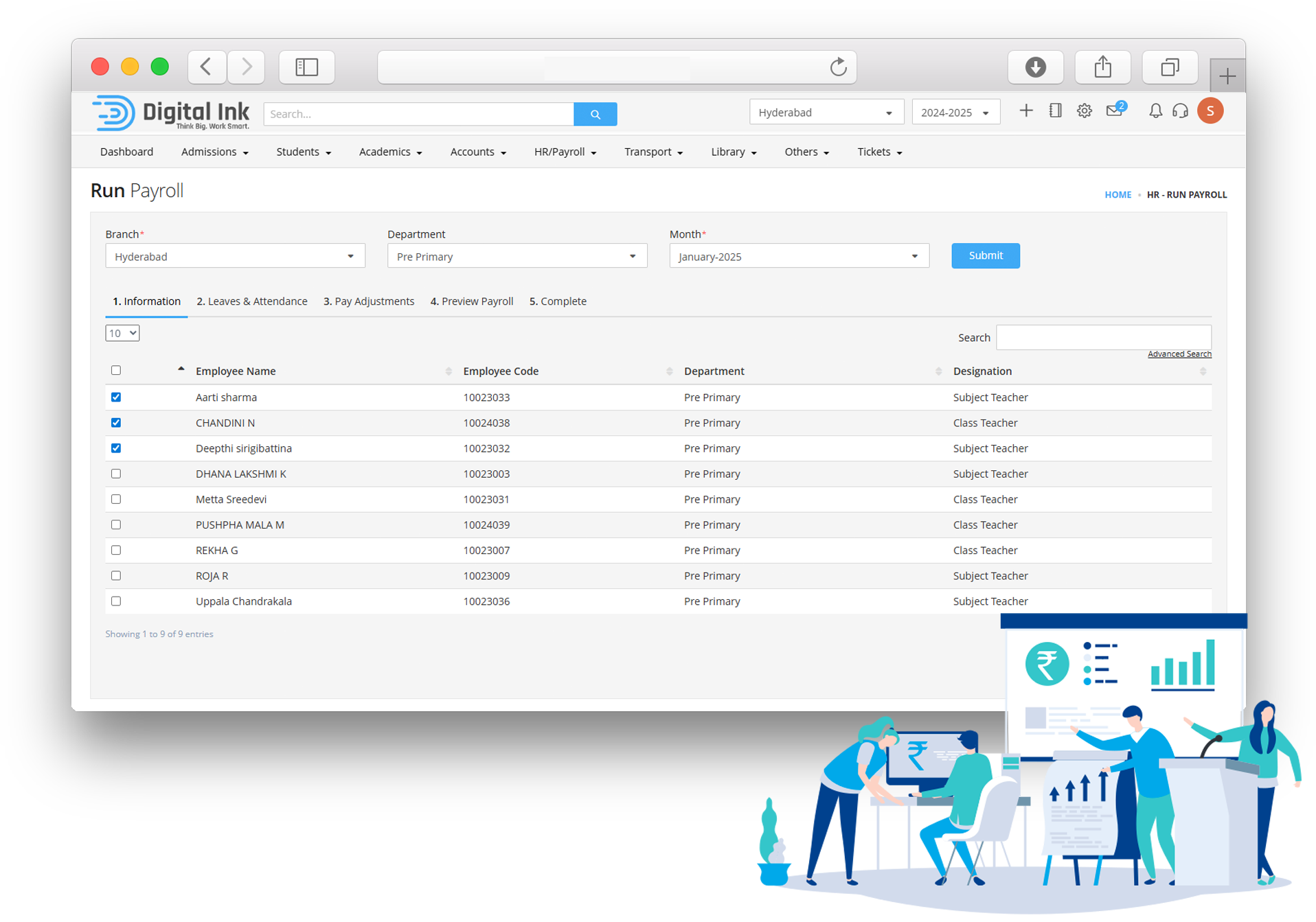 Centralize employee data; automate payroll, attendance and leave of teaching and non-teaching staff and all other employees. Effectively hire efficient faculty and workforce using innovative HR-Payroll software and solutions.