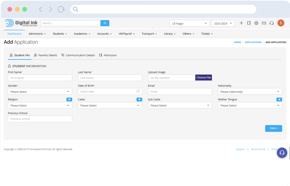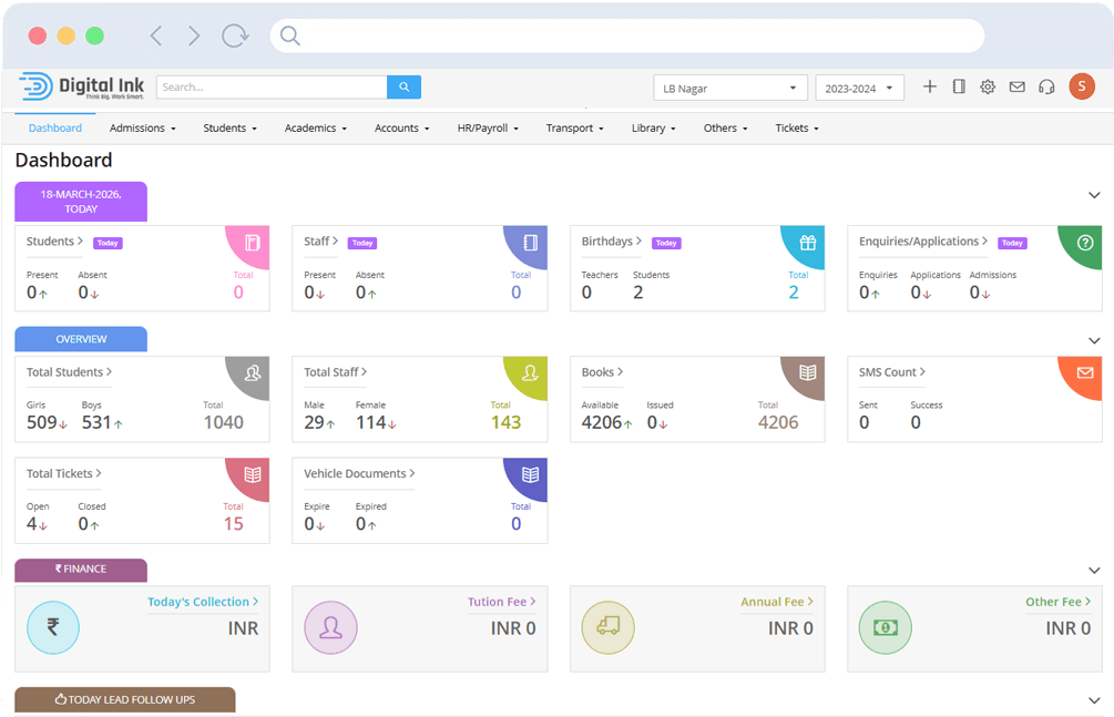 Digital Ink Edu ERP helps educational institutions manage admissions, student records, fees, communication, and staff operations from one powerful and easy-to-use platform.