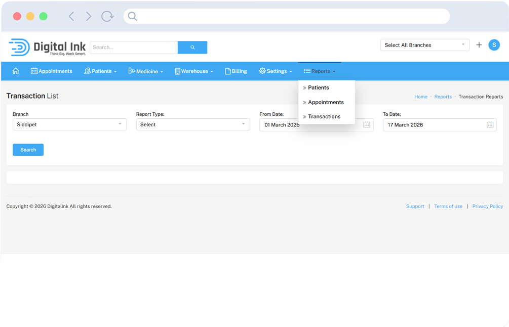 Additional features like branch transfer ensure flexibility when patients move between clinic locations.