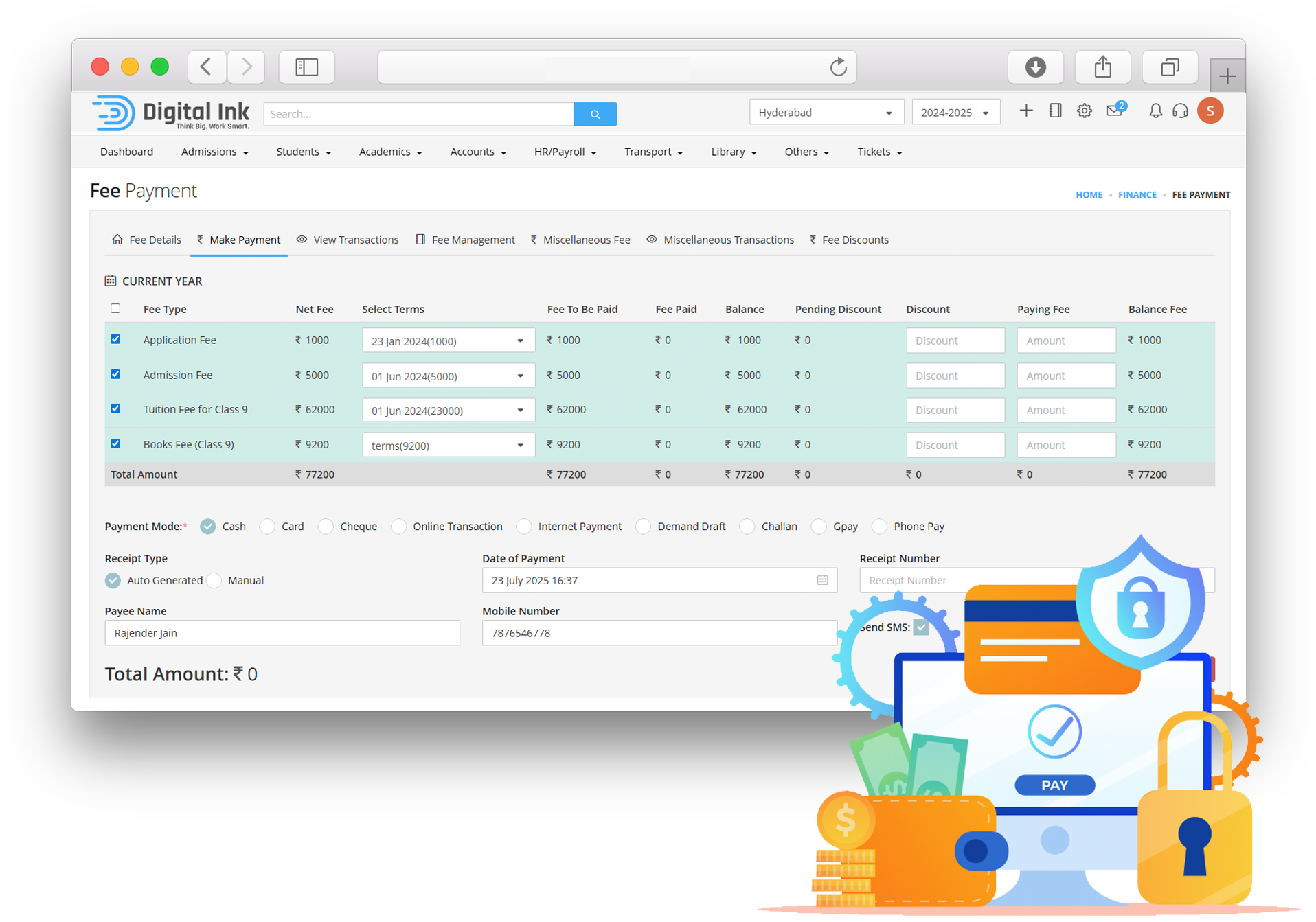 Reduce burden on your school staff and parents. Automate payment processing and take the hassle out of billings and collections. Experience our integrated and adaptive payment processing tool, offering a one-stop automated solution for all kinds of fee payment plans.