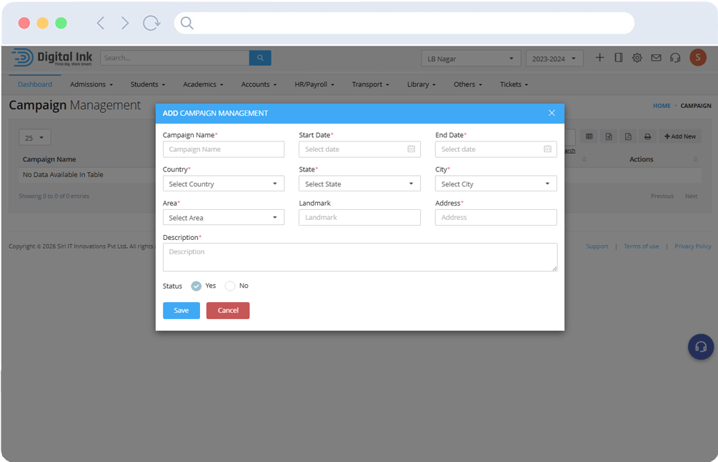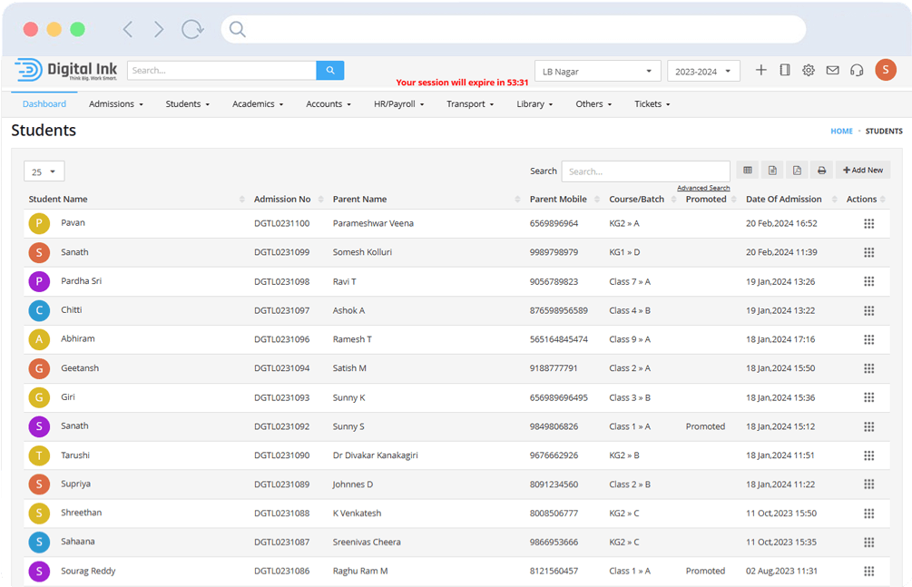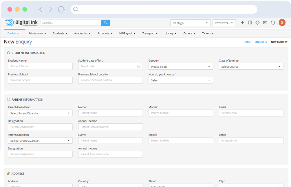 Digital Ink Edu ERP helps educational institutions manage admissions, student records, fees, communication, and staff operations from one powerful and easy-to-use platform.