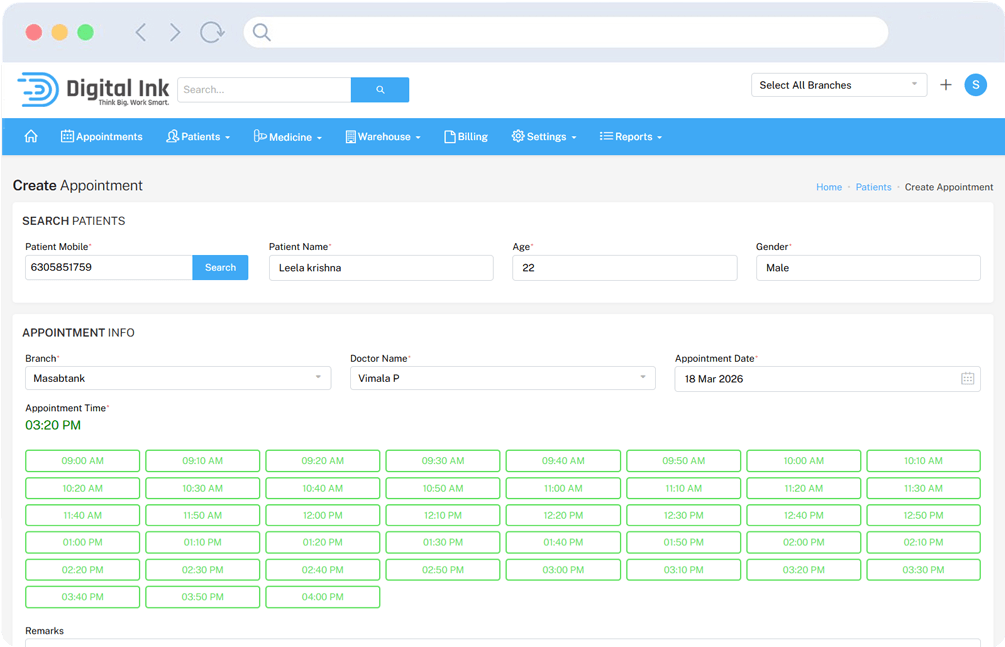 Additional features like branch transfer ensure flexibility when patients move between clinic locations.