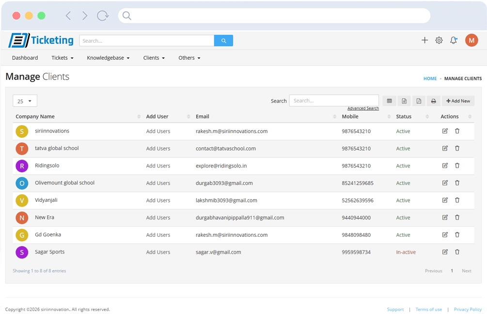 Our ticketing system helps teams manage support requests, assign tasks, track ticket status, and resolve issues efficiently. Designed to improve customer service workflows and enhance support team productivity.